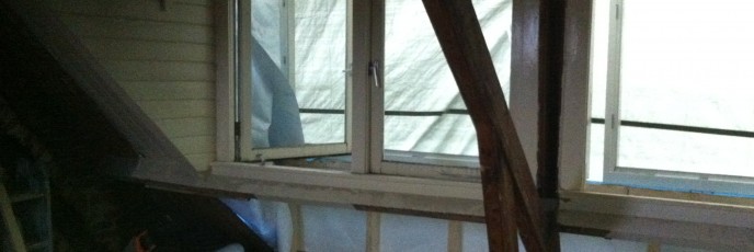 Vandaag is de andere schoorsteen weggehaald. Er zit een enorm gat in de zoldervloer waar de nieuwe trap komt. Er is een begin gemaakt met de bouw van de nieuwe dakkapel, nog voordat de oude goed en wel verwijderd is. En op de begane grond kijk je nu zo de kruipruimte in.