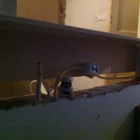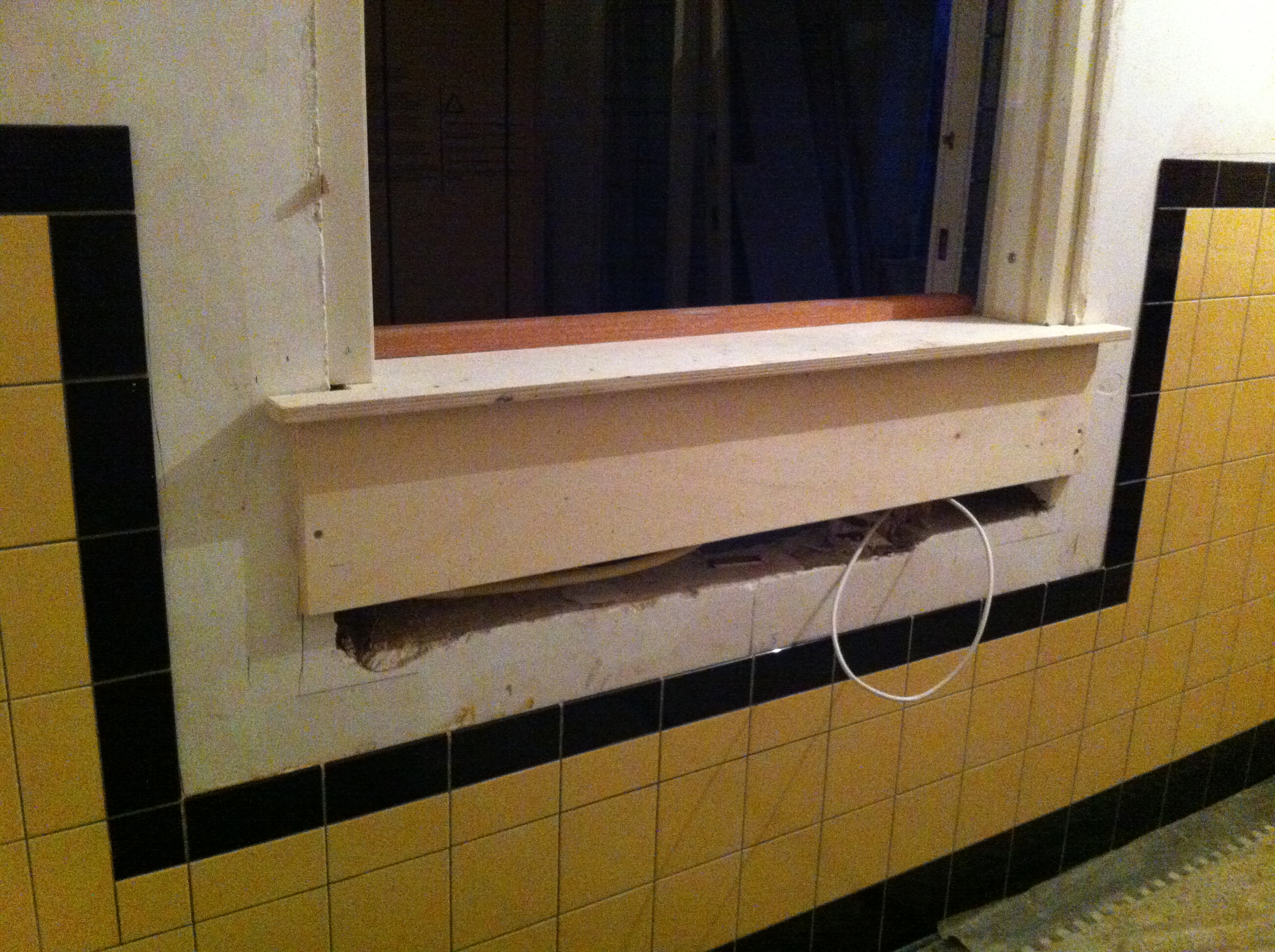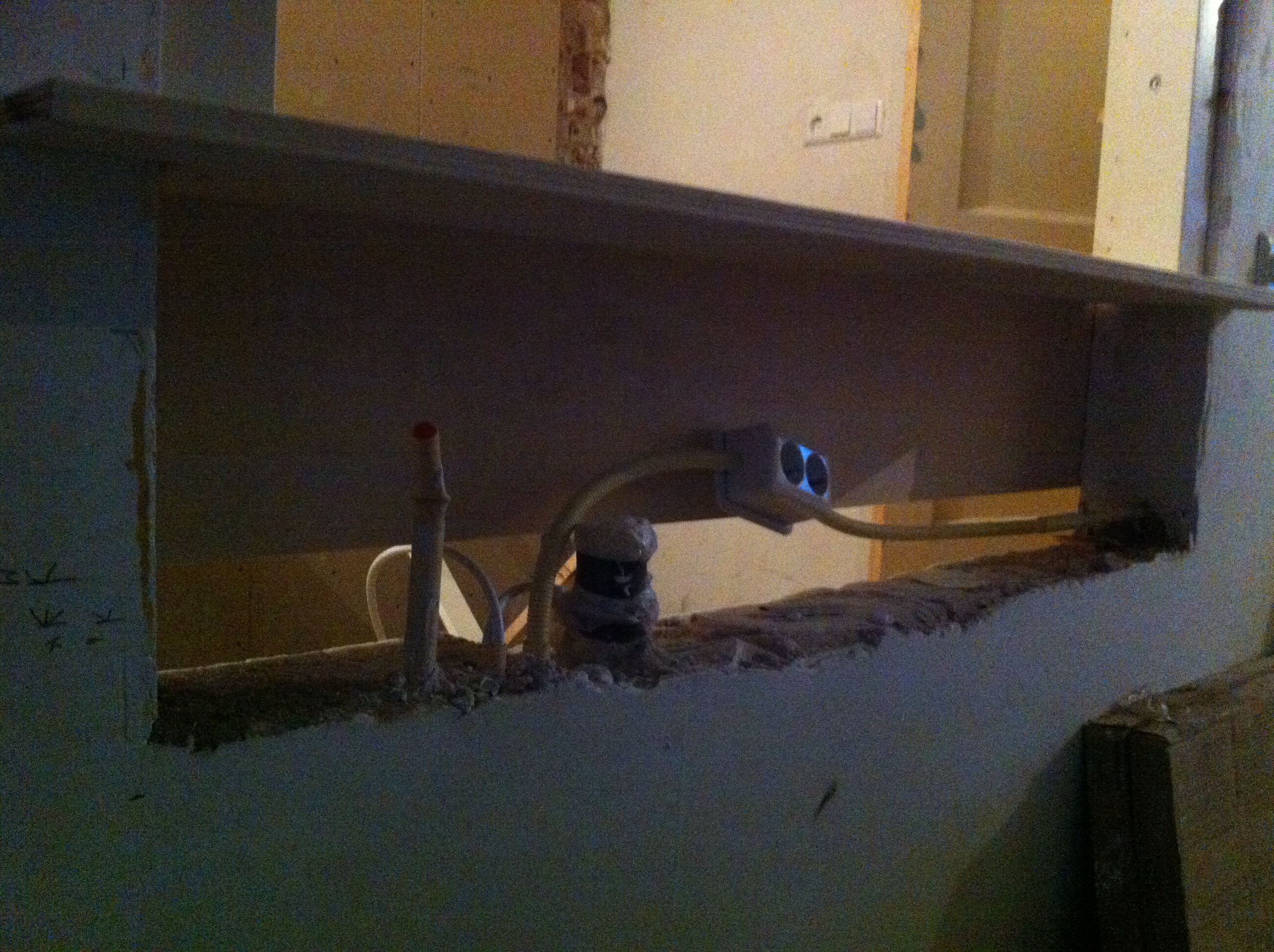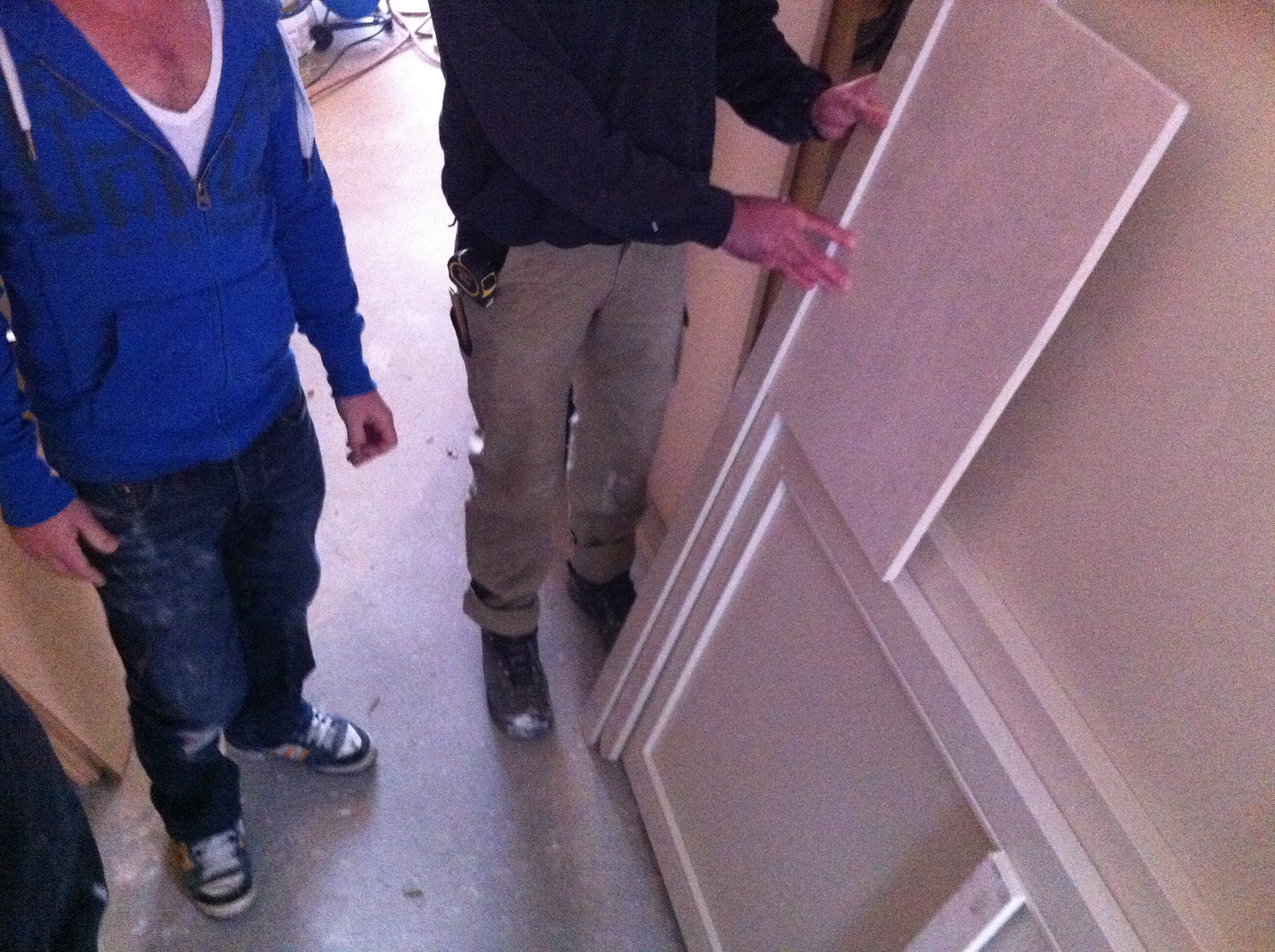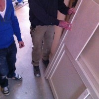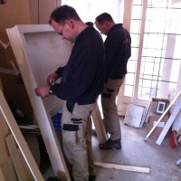 Om tijdens het kokkerellen contact met onze gasten aan de eettafel te hebben moesten we iets verzinnen tussen keuken en woonkamer. Het is een keukenluik geworden en is vandaag geleverd. We zijn meteen begonnen met plaatsen. Het is groter geworden dan ik had verwacht, maar dat is alleen maar goed als we het oorspronkelijke doel van het luik herinneren.
